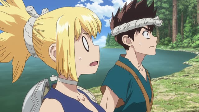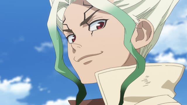 After five years of harboring unspoken feelings, high-schooler Taiju Ooki is finally ready to confess his love to Yuzuriha Ogawa. Just when Taiju begins his confession however, a blinding green light strikes the Earth and petrifies mankind around the world— turning every single human into stone. Several millennia later, Taiju awakens to find the modern world completely nonexistent, as nature has flourished in the years humanity stood still. Among a stone world of statues, Taiju encounters one other living human: his science-loving friend Senkuu, who has been active for a few months. Taiju learns that Senkuu has developed a grand scheme—to launch the complete revival of civilization with science. Taiju's brawn and Senkuu's brains combine to forge a formidable partnership, and they soon uncover a method to revive those petrified. However, Senkuu's master plan is threatened when his ideologies are challenged by those who awaken. All the while, the reason for mankind's petrification remains unknown. (Source: MAL Rewrite)