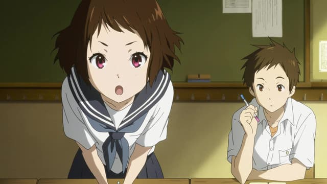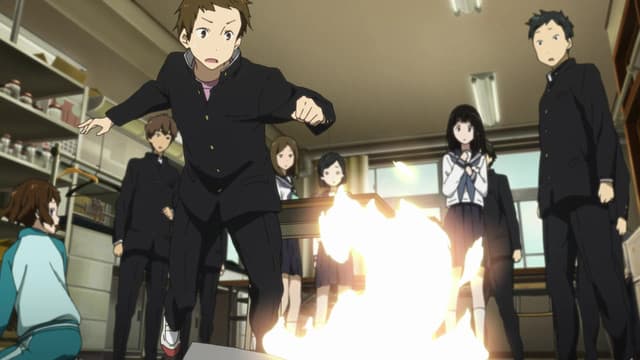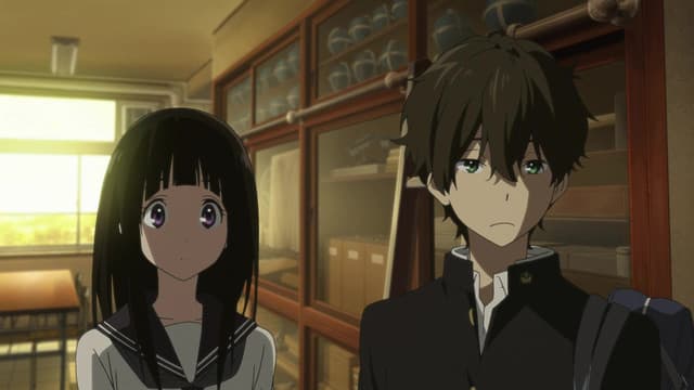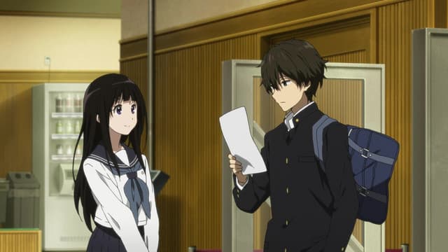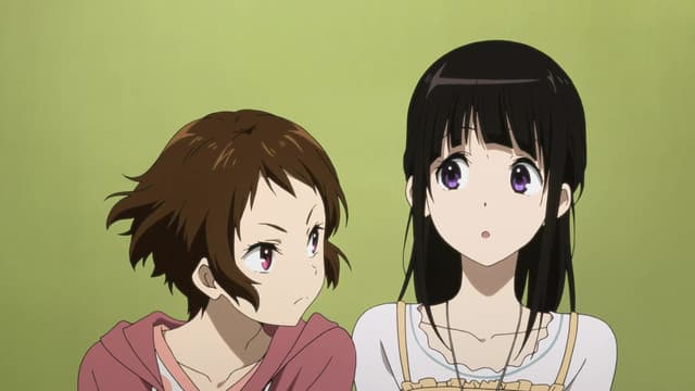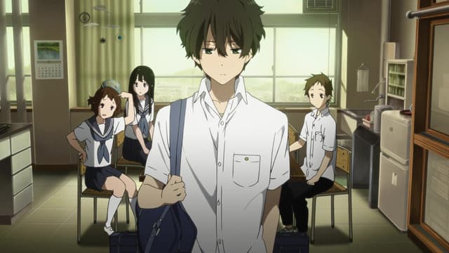 Energy-conservative high school student Houtarou Oreki ends up with more than he bargained for when he signs up for the Classic Literature Club at his sister's behest—especially when he realizes how deep-rooted the club's history really is. Begrudgingly, Oreki is dragged into an investigation concerning the 45-year-old mystery that surrounds the club room. Accompanied by his fellow club members, the knowledgeable Satoshi Fukube, the stern but benign Mayaka Ibara, and the ever-curious Eru Chitanda, Oreki must combat deadlines and lack of information with resourcefulness and hidden talent, in order to not only find the truth buried beneath the dust of works created years before them, but of other side cases as well. Based on the award-winning Koten-bu light novel series, and directed by Yasuhiro Takemoto of Suzumiya Haruhi no Shoushitsu, Hyouka shows that normal life can be full of small mysteries, be it family history, a student film, or even the withered flowers that make up a ghost story. (Source: MAL Rewrite)